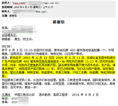 “鉆石”牌,一位老顧客的感謝信